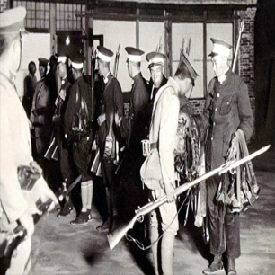 照片中日军正在没收沈阳城中军警的武器。