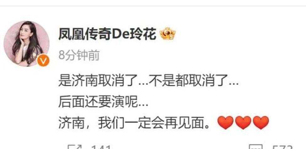 据悉,演唱会取消是因为与山东泰山队中超比赛撞期,导致场地无法提供给演唱会使用