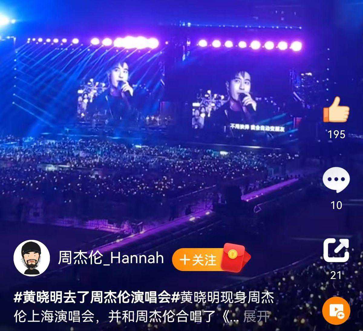 近日,周杰伦上海演唱会上,出现了一位特殊的合唱观众——黄晓明。