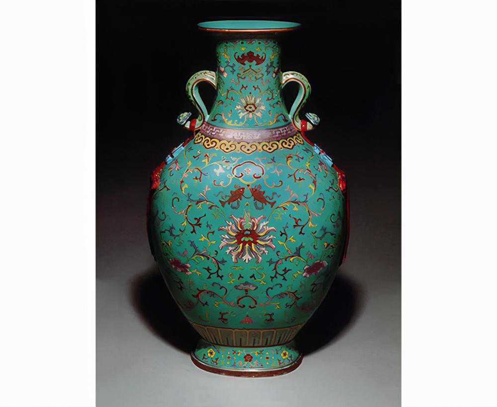 总之这样子的满画工,再加上如此重器,另外配合着描金如意为耳,还要衔挂着松石绿地万寿及矾红描金绶带,想法非常丰富,做出来的东西自然是属于上等品了。