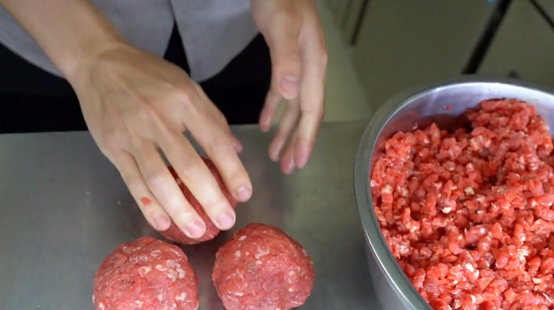进入店里就可以看到,汉堡里的牛肉是老板现场用新鲜的牛肉擀在一起放油里煎的,整个过程都会闻到一股牛肉的香味。特别是老板往牛肉上撒调料的时候那香味连外面巷子里都能闻到。