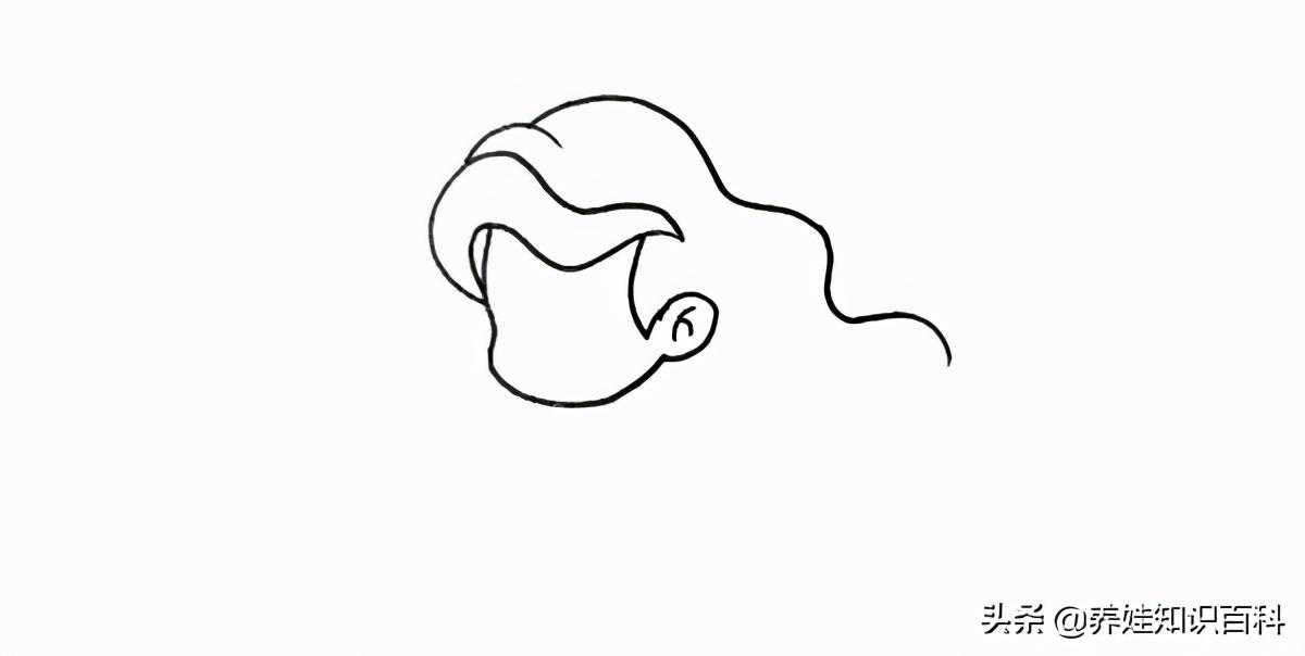 1、第一步画美人鱼的头部,用线条勾勒出大概的轮廓,再加上耳朵。