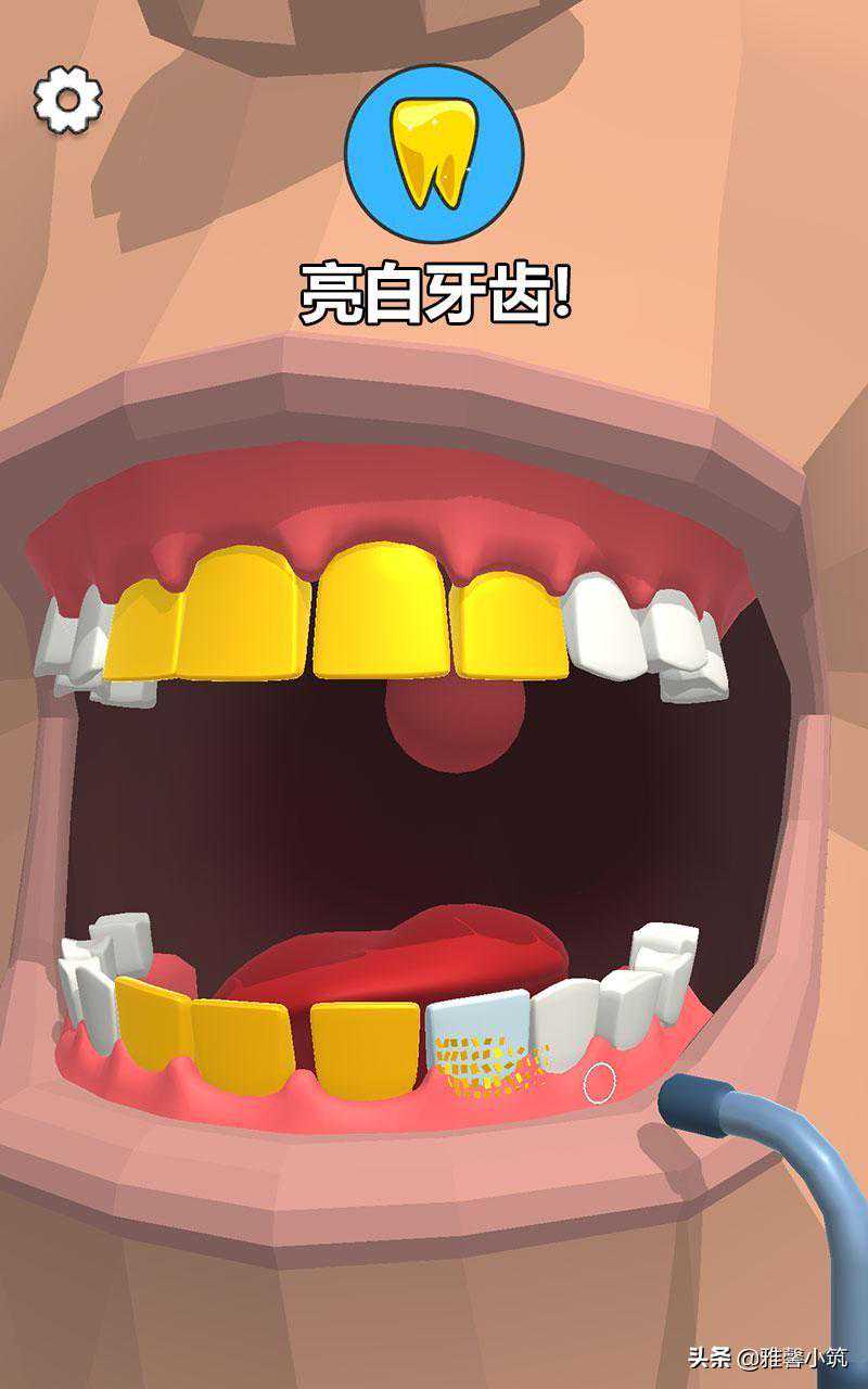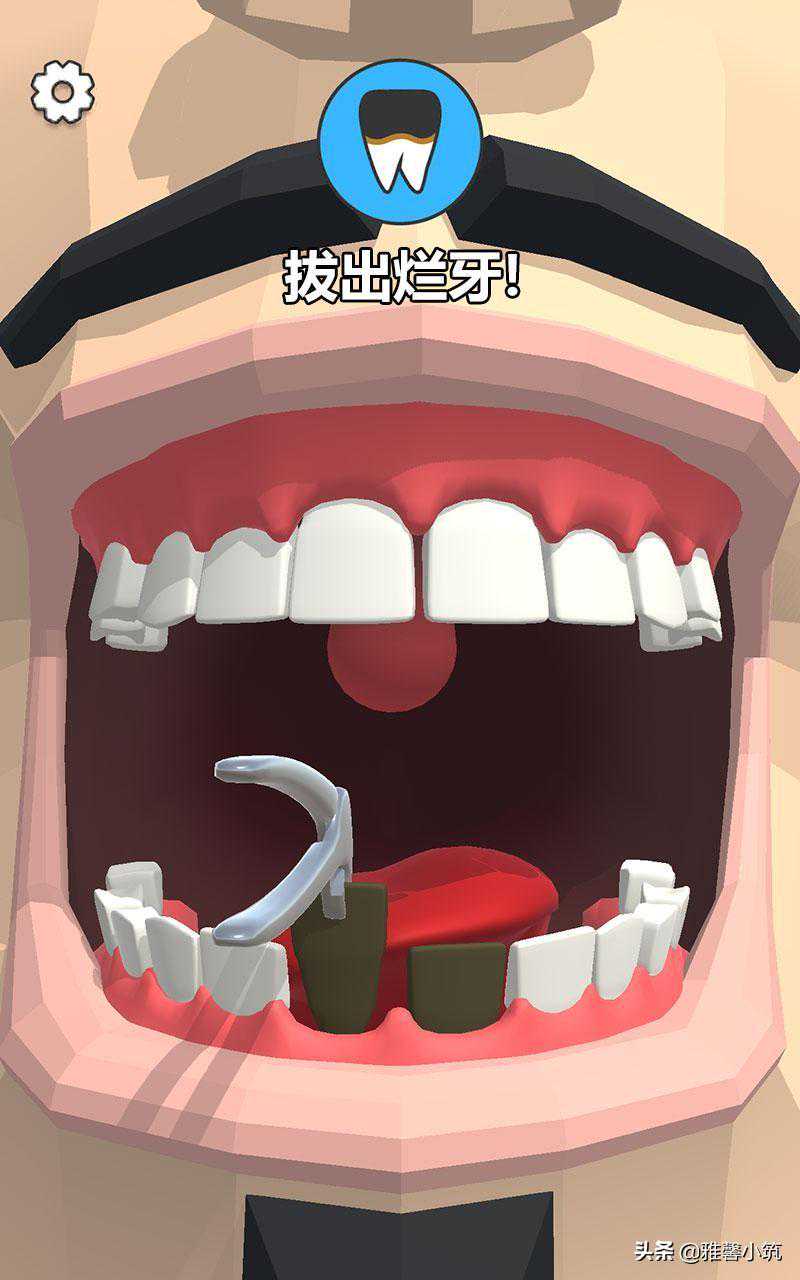 《Dentistbling》的玩法还是很简单的,玩家需要借助专用的凿子去清理患者牙齿上的牙菌斑,特殊的工具完成美牙的工作,用洗牙器让患者的牙齿更加亮白,用专业的钳子拔出已经坏掉的烂牙。每个体验都需要玩家小心翼翼的全身心投入,面对不同的问题使用不同的工具进行,甚至玩家在帮助患者拔出烂牙之后还需要替换上闪亮的新牙,在清洁完病菌之后帮助患者带上牙套等等。