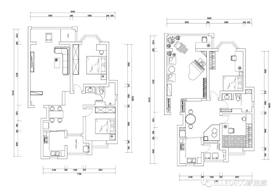 左图为改造前的户型图,右图为改造后的户型图