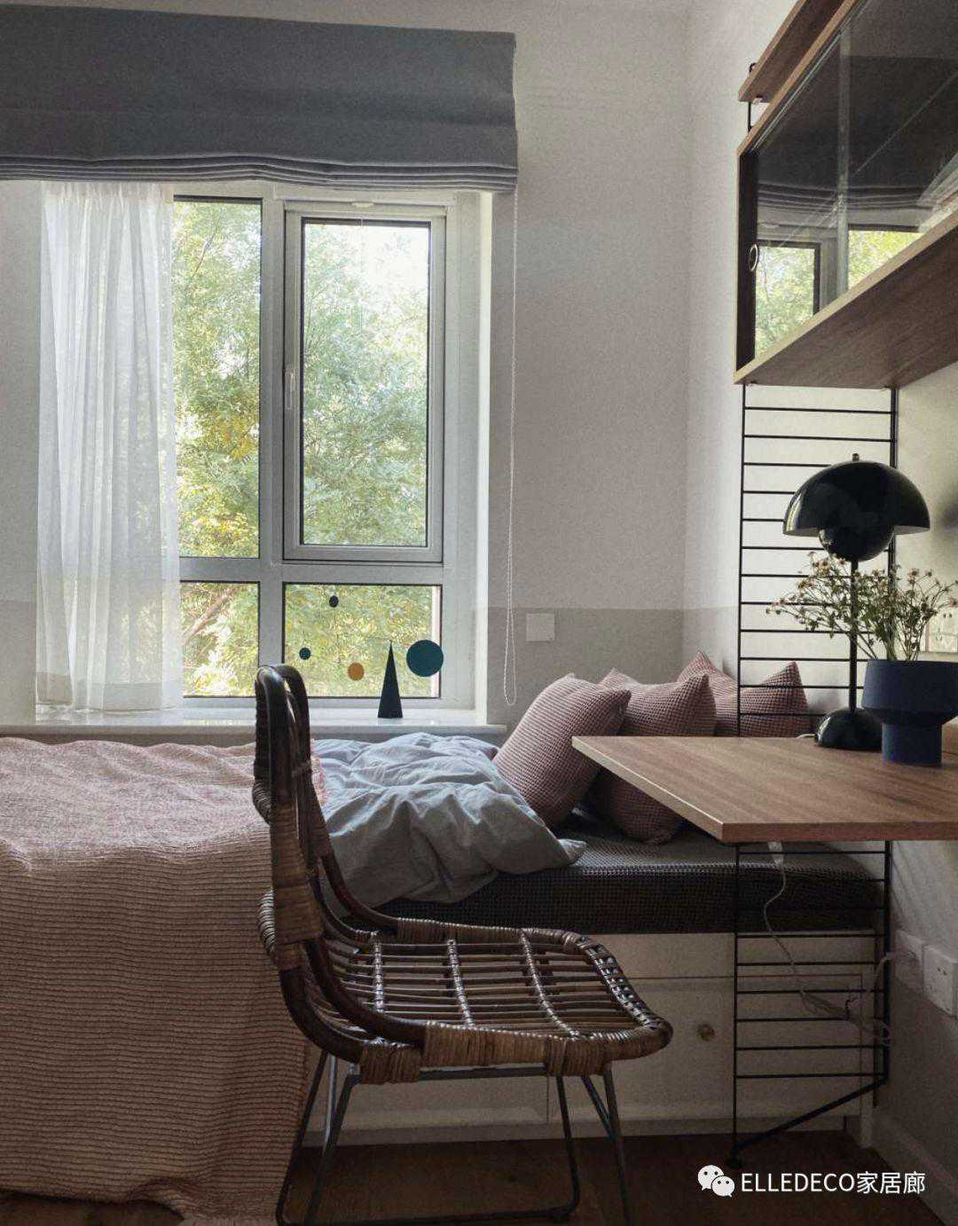 改造后的小卧室。设计师把飘窗清出来后,采光舒服了很多。
