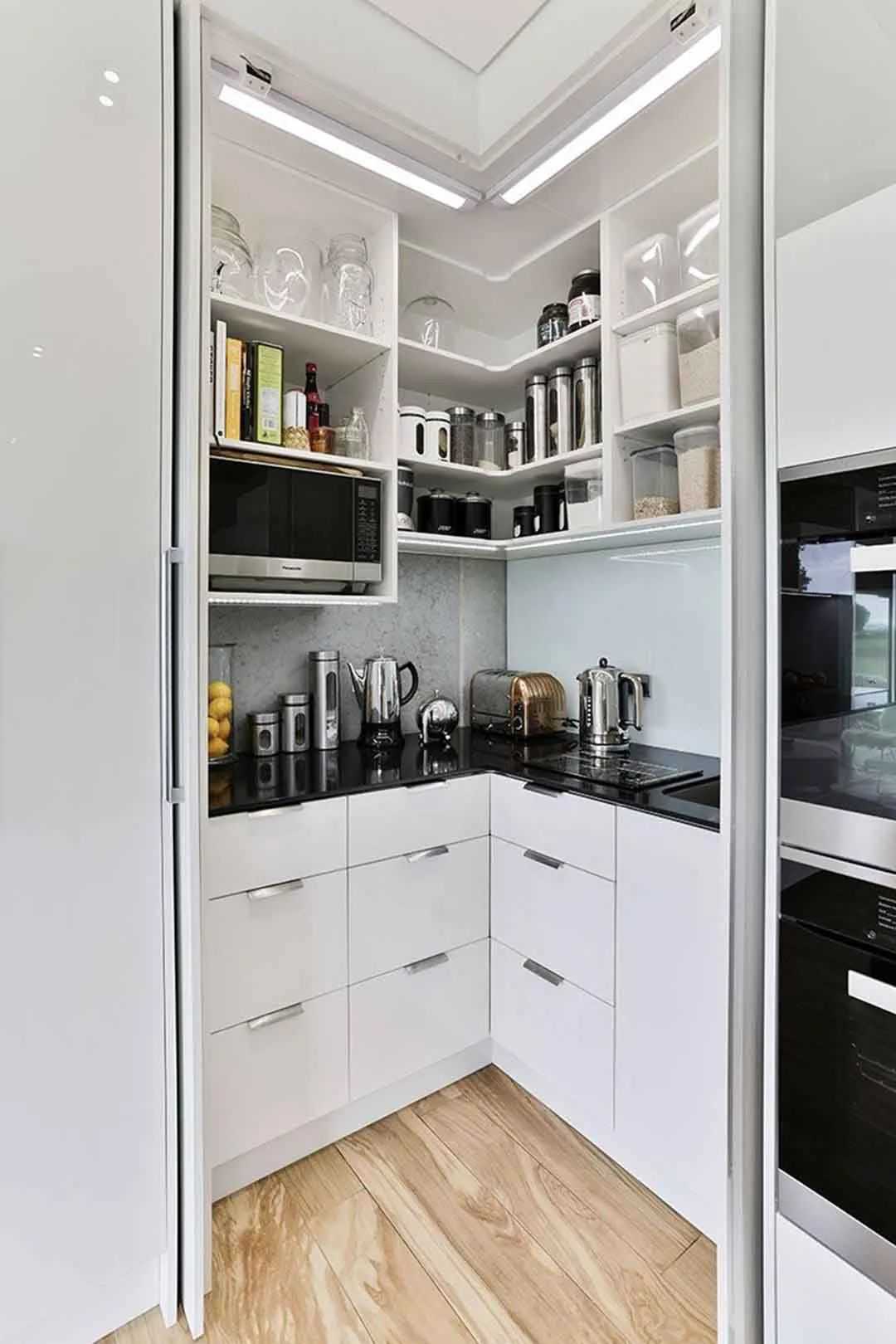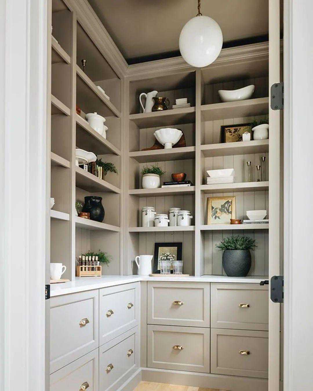 储物间也经常设置在厨房,能安排在转角,就多了能收纳干货杂粮、厨房小电器的空间。