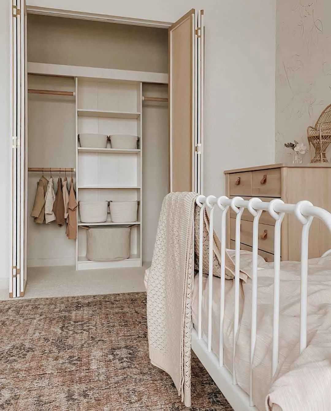 卧室不做定制衣柜,能改用壁橱衣柜取代,好处在于收纳更有弹性,除了能放衣物,也能成为收纳杂物的空间。