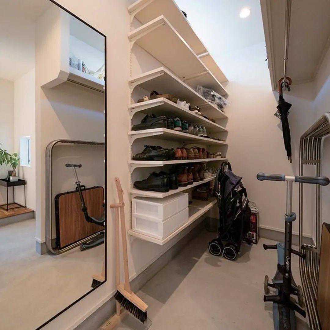优点在于能和鞋柜、衣帽间合并,一入门收好鞋子后,公文包、外套、小孩的婴儿车也都在入口收纳完成,你能一身轻松的进到室内,所有杂物都在门口被挡下。