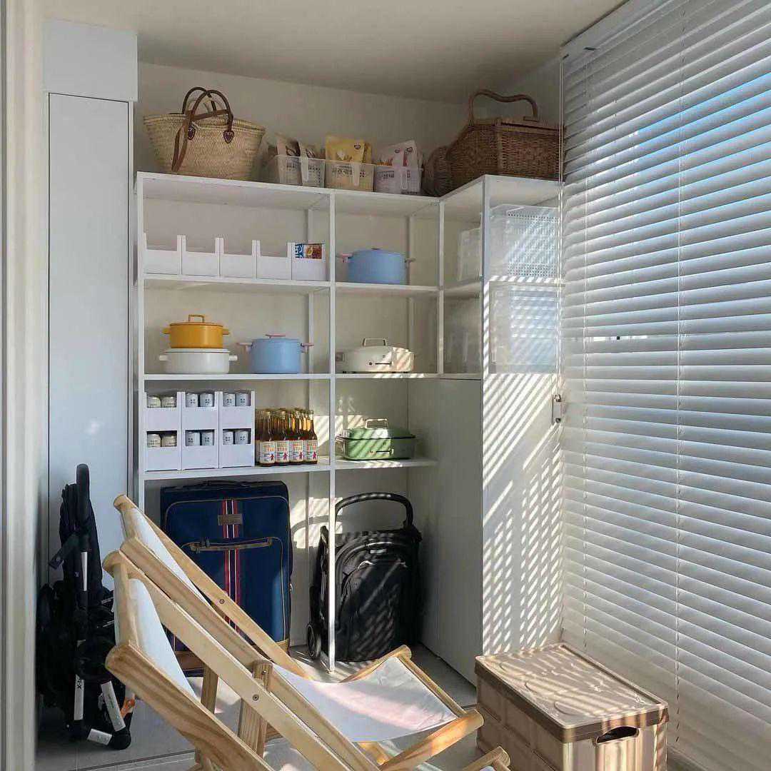 01│改用组合式货架,更有弹性比起固定做死的定制柜体,能自由拆装的组合式货架会更方便,能随着收纳物品的种类和大小进行调整。