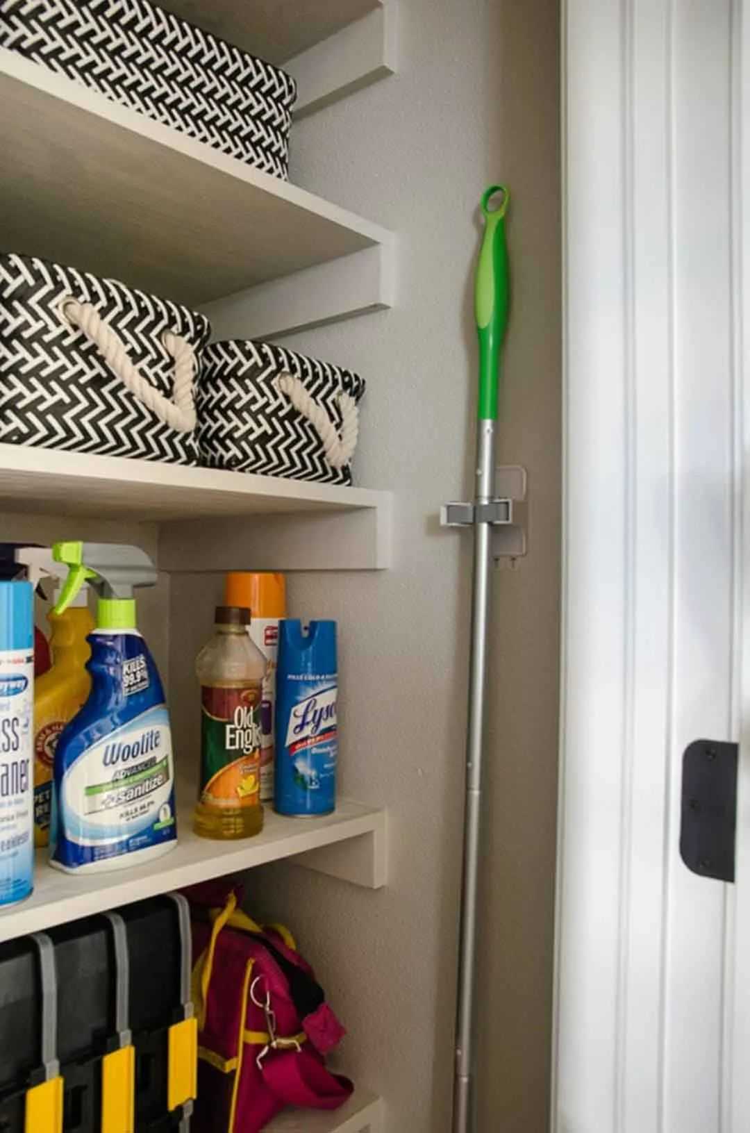 储物间的墙面、门后千万别放过,尽可能物尽其用,在墙上与门上设置挂勾,就能收纳扫除用品、雨伞等生活杂物。