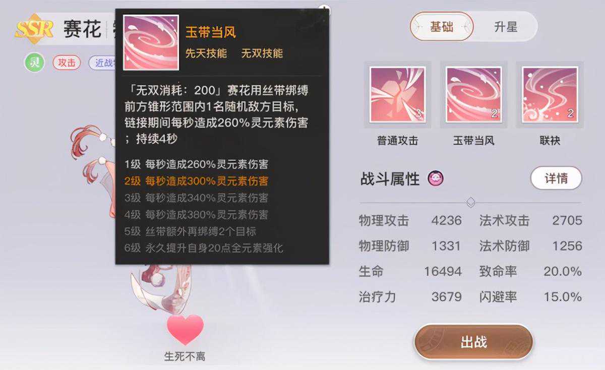 除了打本,赛花无双技能和被动的搭配也能让她在培养成型后直接晕住三人,更是一些多人PVP玩法的神技,而身为游戏最开始就送给玩家的SSR,赛花也是抽卡最容易爆出的英灵,有很大的培养空间。