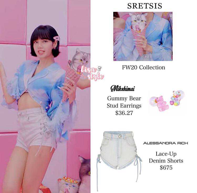 相比起来,第四套的穿搭就还是规规矩矩地走了韩流。不过蓝白色染印花搭配白色系带短裤也是动了小心思,完美地称出了LISA的身材曲线。一些想走韩系少女风的plmm们可以尝试哦~