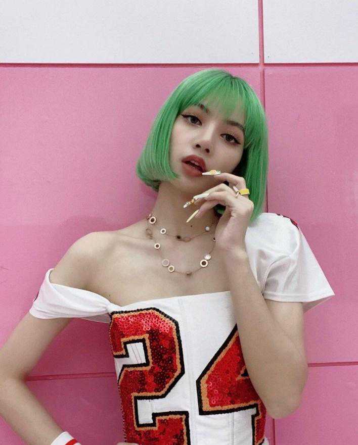 不过这一套LISA的绿色短发才是最吸睛的,大胆的草绿色,利落的剪发,皮肤不够白,颜值不过关都不要想考虑这个颜色。
