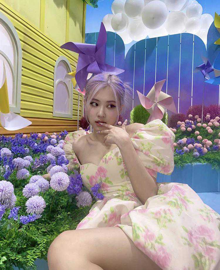 不得不说,这一次的ROSE又成功地当了一波女团发色带货王,相比起Jennie那套粉色look里的粉紫发色,ROSE的发色饱和度更低,所以也理所当然地仙气十足。