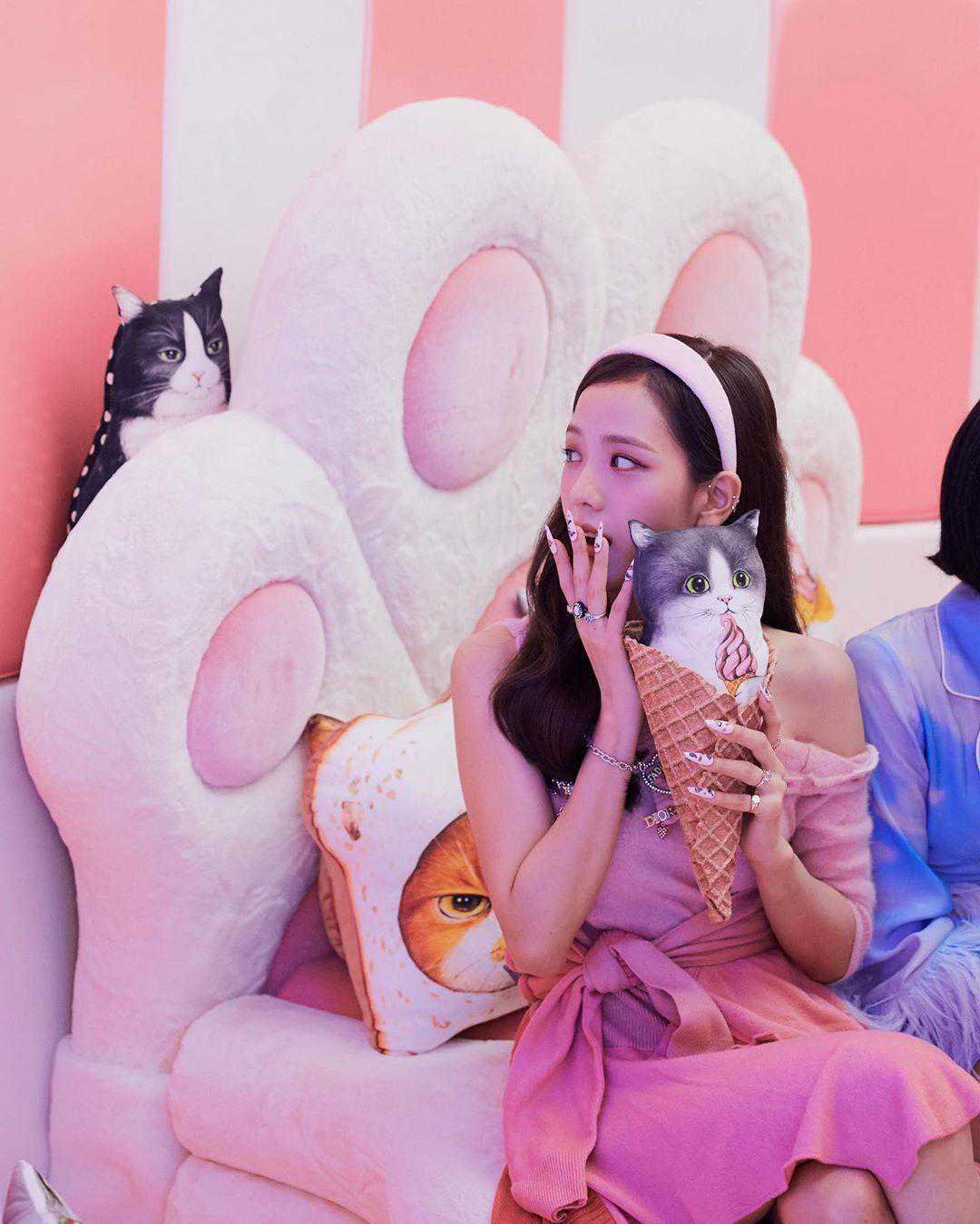 说到Jennie,SO姐第一次被惊艳到还是因为下面这张宣传照。粉紫色的双马尾,粉色彩虹连衣针织裙搭配粉色袜子,整个人就像童话世界里的人鱼公主,美到我哑口无言。。