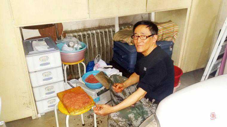 附一张宿老师在车库里挥刀剁鸡肝的照片,打窝用的。