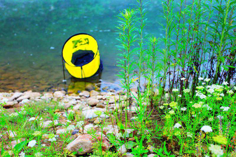 我正百无聊赖,忽听咕咚一声唏哩哗啦水响,我的狗狗蹦水里去啦。好狗知我心,来哨子河不下水游一圈太对不起如此山水。泡在水里,清澈温润,舒爽宜人,登时人就精神了。游到三蛋的手竿钓位探探底,看似深实则浅,沙子底,水温偏高,盛夏之时不可能有什么大鲫鱼。而20米开外一个钓位不错,水下似乎是一深沟,水温明显低一些,脚丫子一阵清凉,水下的空调间,我要是大鱼我就呆这儿,再打竿就往此处抛了!