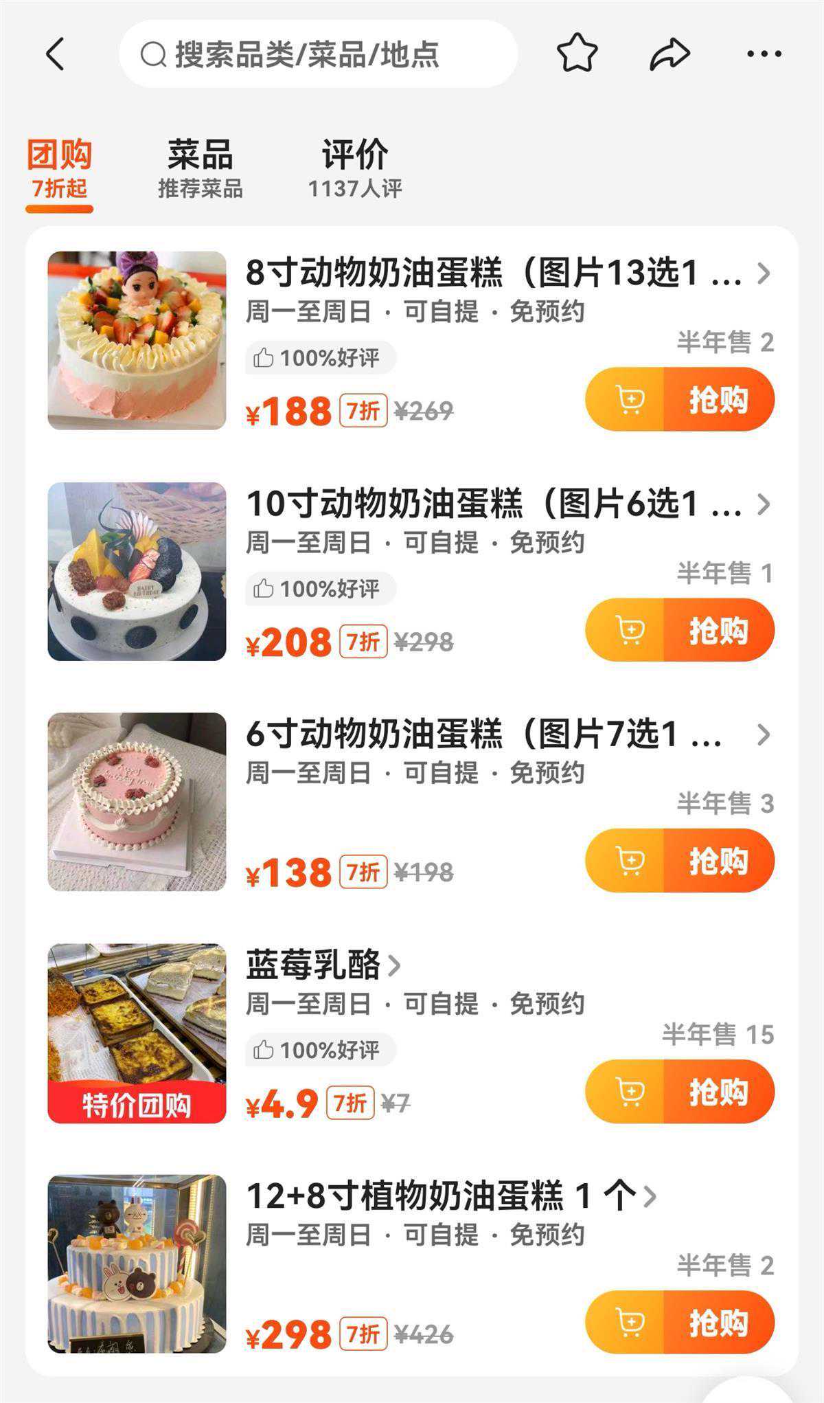 涉事蛋糕店售卖的其他蛋糕(截图自点评网站)
