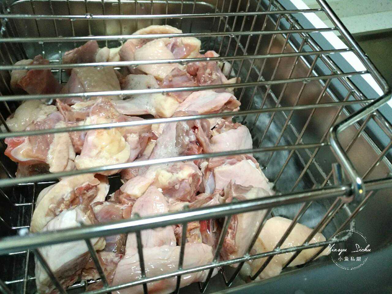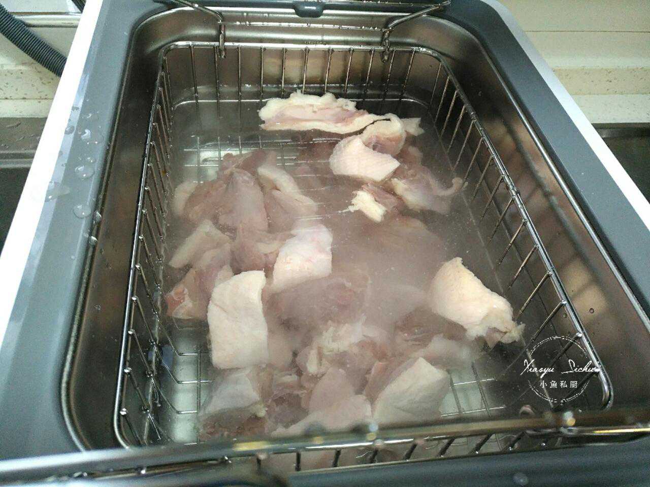 启动放水键,放掉脏水,再冲洗几遍,提起提篮沥干水分,经过羟基(电解)清洗过的鸭肉,净化了血水,没有激素残留,不用再焯水了,一会儿就可以直接下锅烹饪了,方便省事。