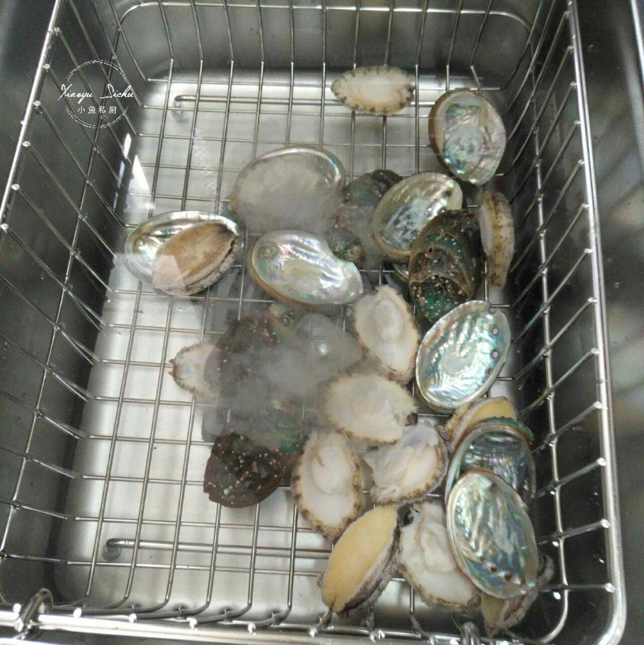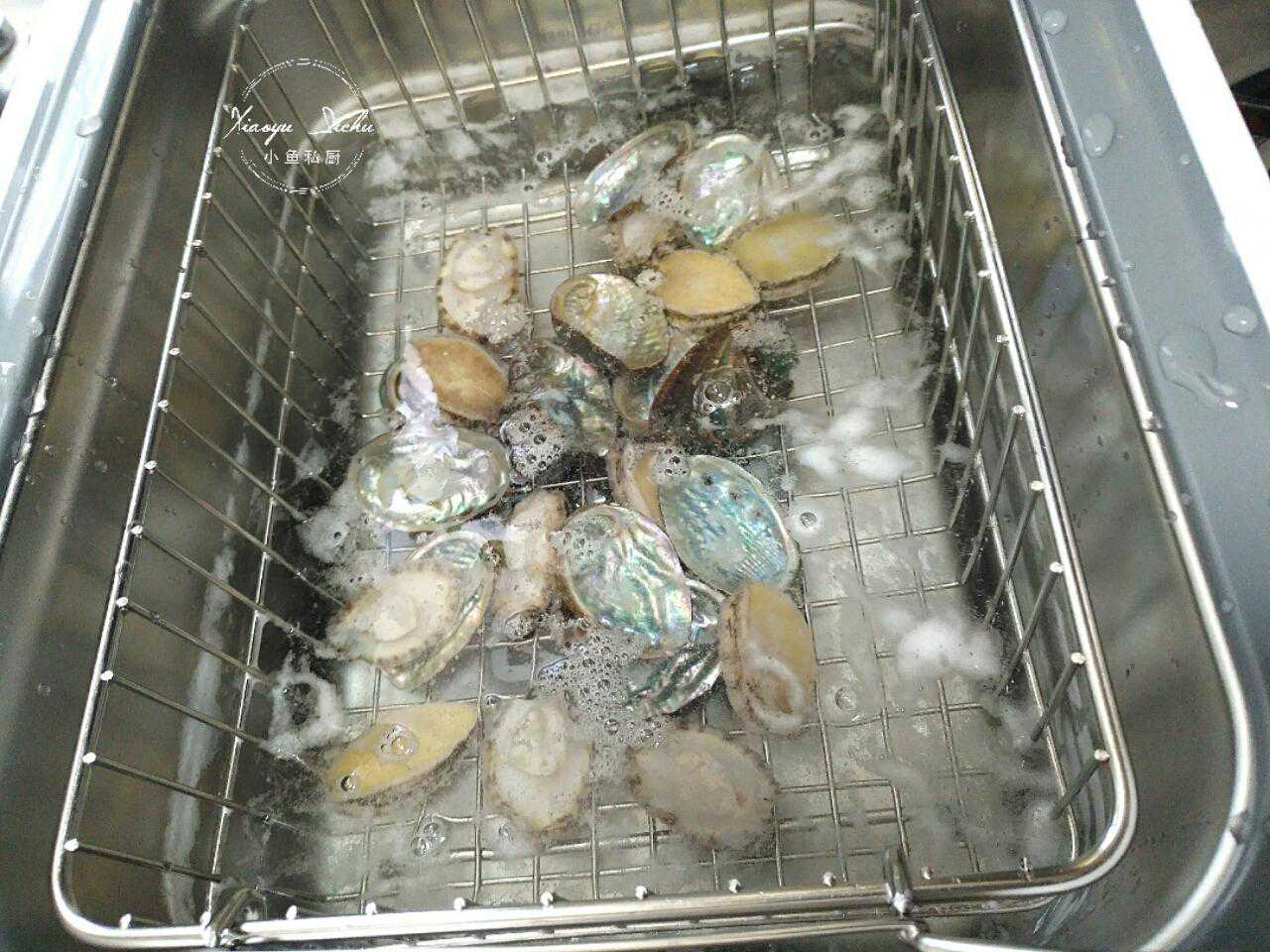 清洗海鲜前几天在超市里买的鲜活鲍鱼,1.99一只,就是个头不大,为了方便清洗。我把鲍鱼内脏取出来后,就把鲍鱼连壳一起放入果蔬清洗机里了。