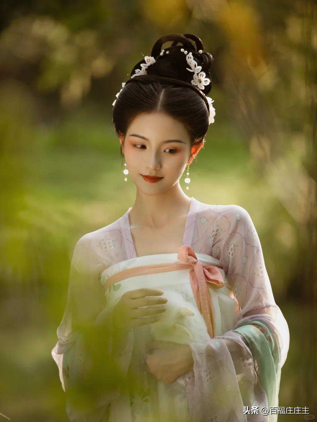 她就像是大唐在逃的小公主,虽然身处现代,但她的气质和装束却让人仿佛穿越到了那个繁华的时代。她不仅有着公主的高贵气质,更有着公主的善良与纯真。她的每一个动作、每一个眼神都充满了魅力,让人无法移开视线。