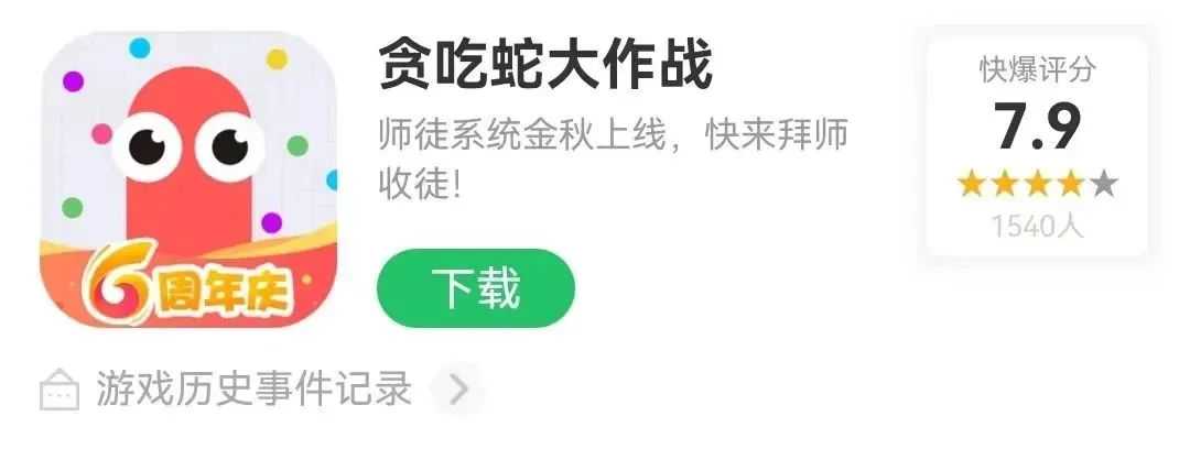 《贪吃蛇大作战》作为微派网络的代表作之一,自2016年开始,在各大游戏平台席卷起了一股贪吃蛇风潮,且在APP/小游戏的双端运营下,该游戏上线数年后,热度依然不减,如今依然持续稳坐多平台热玩榜单前列,且当前在好游快爆上依然维持着7.9的高分评价。据官方披露的信息,这款游戏目前累计的玩家数量已经超过了4亿人。