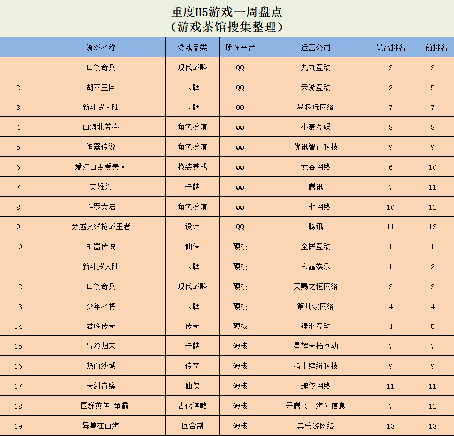 重度H5游戏:《口袋奇兵》重回魁首,《异兽在山海》冲榜