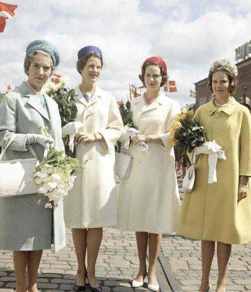 当年的丹麦王室三姐妹。跟童话中的住在城堡中的公主一模一样,三人成线,更是电倒一排人。她们是丹麦前国王弗雷德里克九世和英格丽德王后所生,现实存在的升级版"唐顿庄园"。