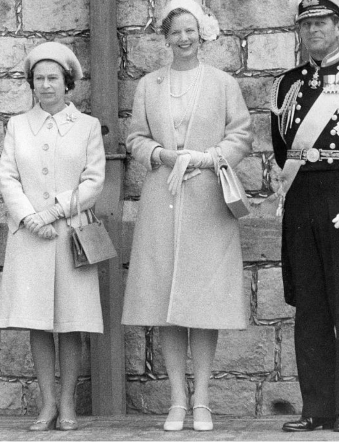 贴一张两大"女巨头"的合照。虽然丹麦王室名声稍逊英国王室,但丹麦女王完全不输名声赫赫的英国女王嘛。
