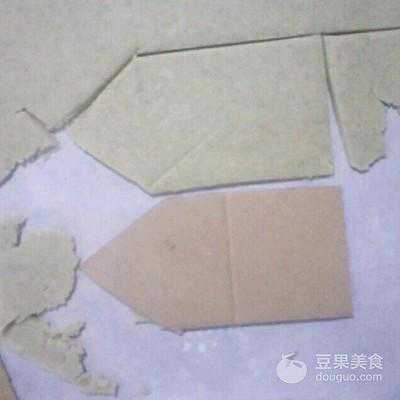 9、用擀面杖擀成厚度为3mm的薄饼,用刀按画出的图形刻出形状。(底座留到最后哈)