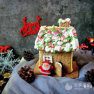 18、把淡奶油随意挤在屋顶做出雪状,撒上彩针糖即可。