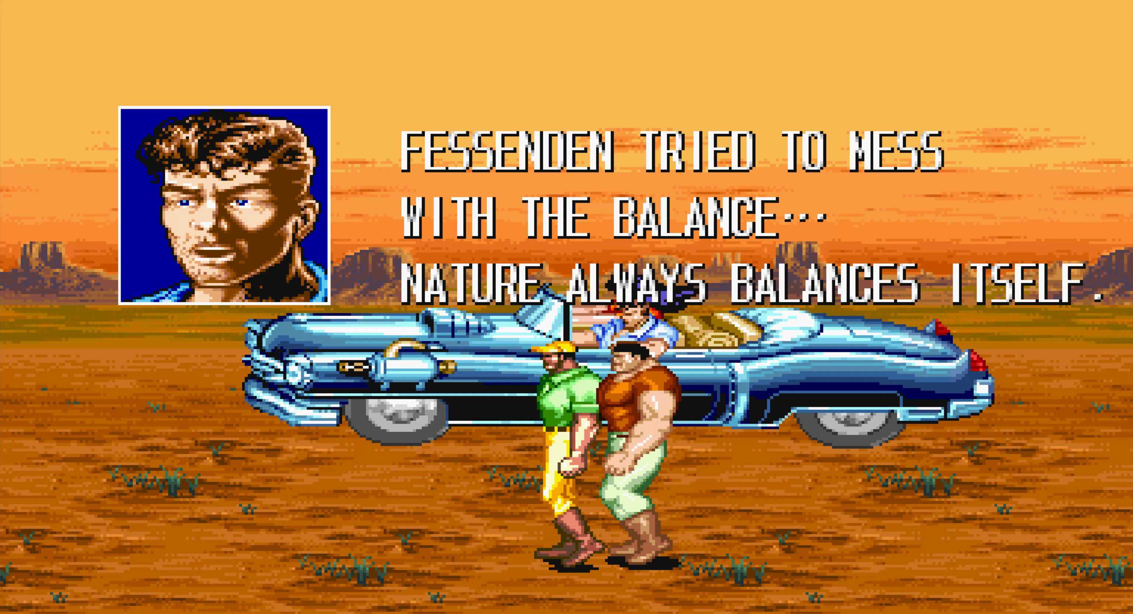 在落日的余晖下,哥俩怀着伤心与愧疚默默前行,忽然听到熟悉的引擎声,杰克与汉娜开着豪车追了上来。杰克先发了一番感慨,说费森登想要破坏自然的平衡,但大自然永远会自我调节……