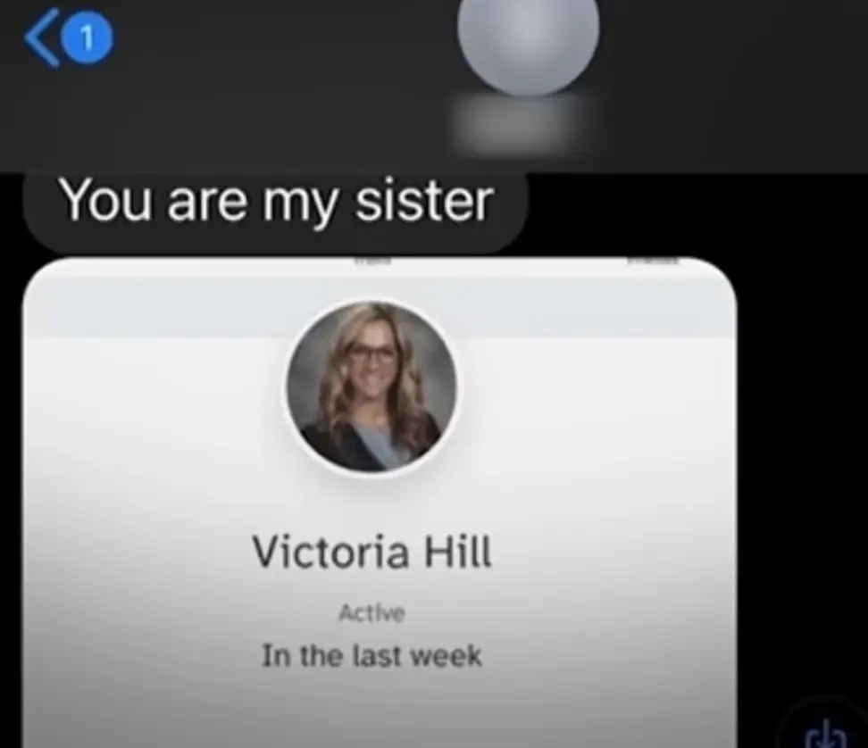 两个月后,当维多利亚和丈夫以及两个年幼的孩子准备一起去夏日度假时,前男友给她发了一张截图,上面显示了他们在DNA检测中的联系。