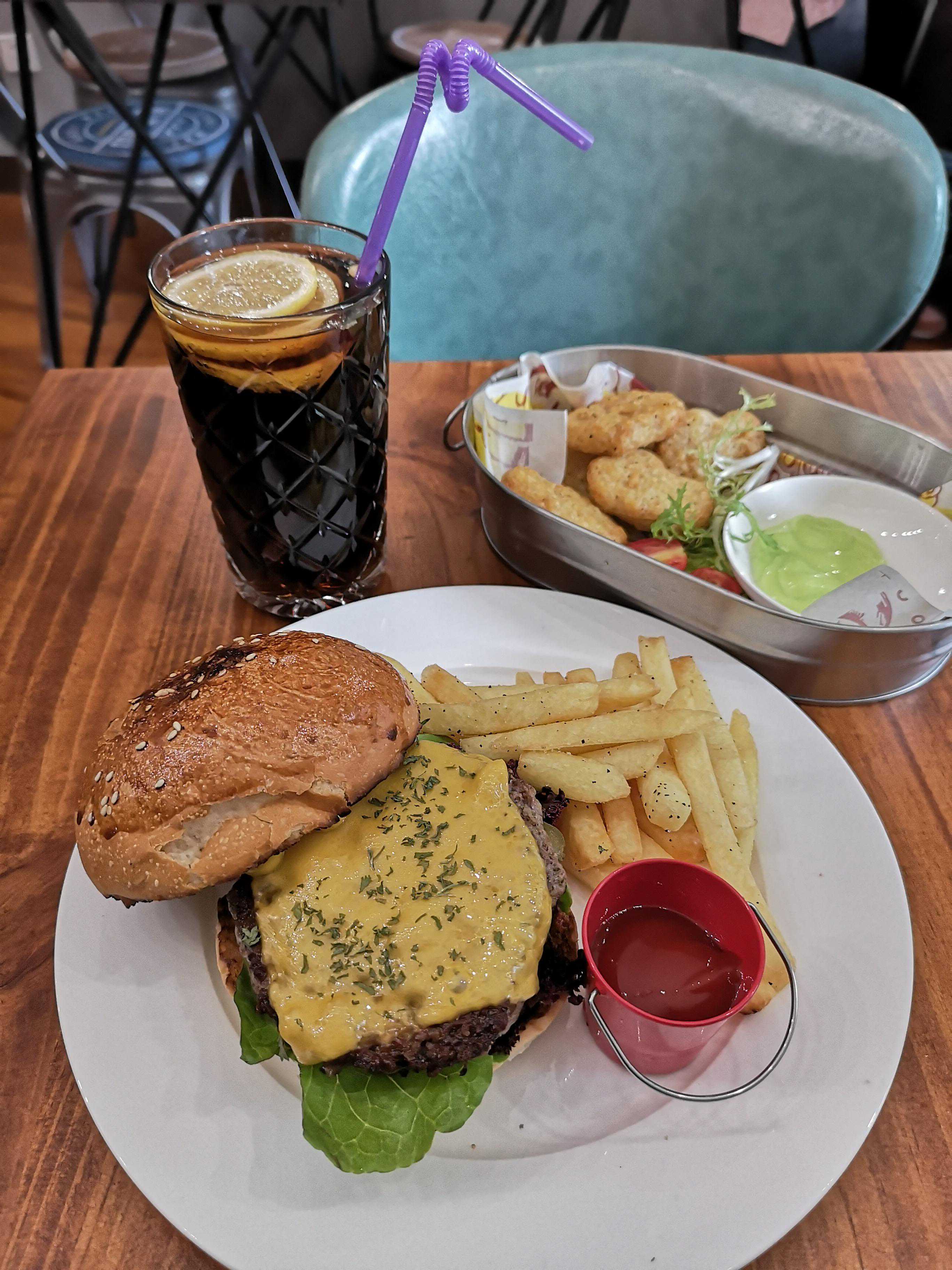 推荐牛肉汉堡,牛肉很厚实,酸黄瓜等配菜也很足。面包胚很酥脆,肉饼香嫩多汁,香而不腻,吃到嘴中饱满而又丰富。咬一口你会感受到肉排中的汁水融入口腔,肉排很软嫩我很喜欢。缺点:我个人很喜欢吃他家汉堡,如果你不耐吃比较软的肉排可能就不适合你。