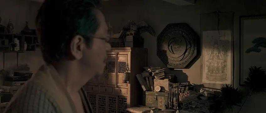 第四幕:道士与法器僵尸的出现让四目道长友叔多年不动的法器“罗庚盘”转动起来。