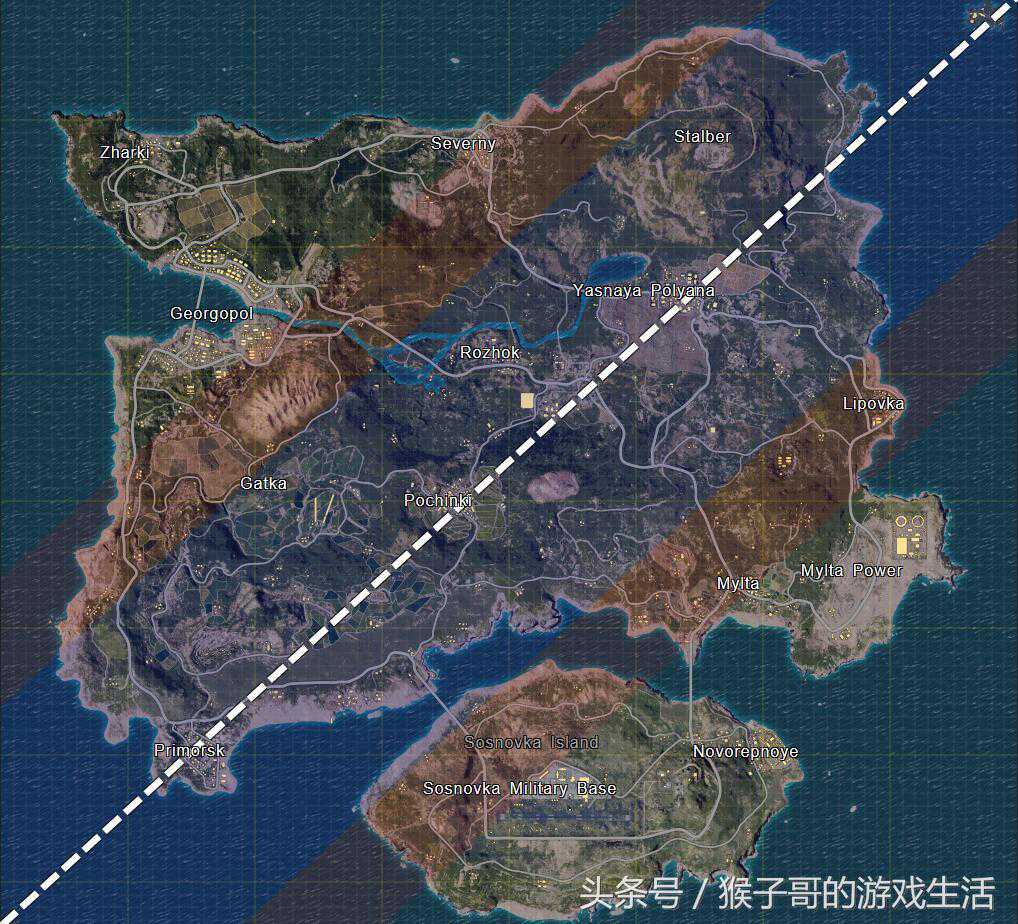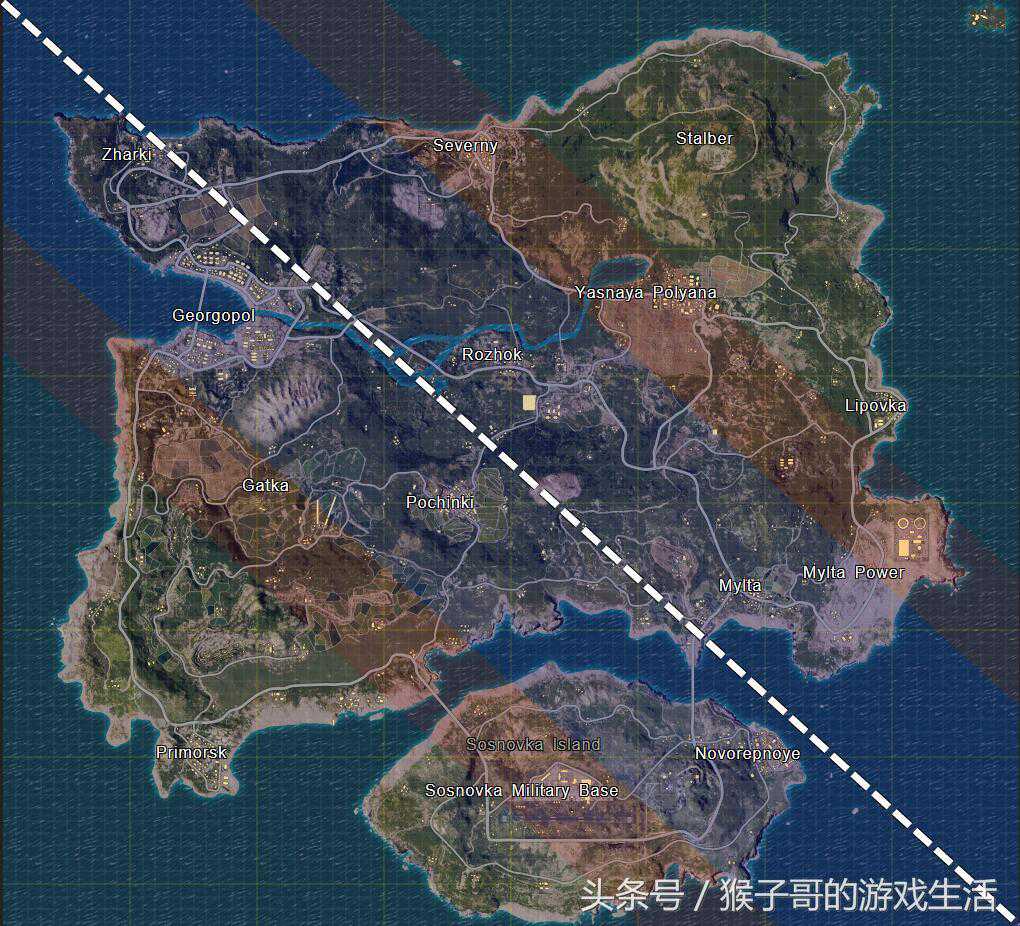今天给大家带来的是绝地求生飞机航线的一些粗浅的探究。由于航线完全随机,并且角度随机,我们近选取了四张图作为代表做一些简单的示例。