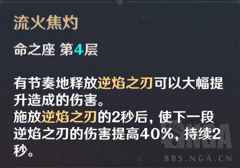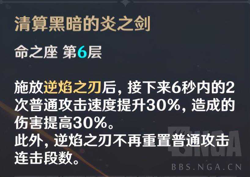 提升最大的命座。不再重置普攻意味着迪卢克能够在一套AE循环中打出更多的高倍率平A,如图所示,迪卢克普攻的第四段伤害是非常可观的。