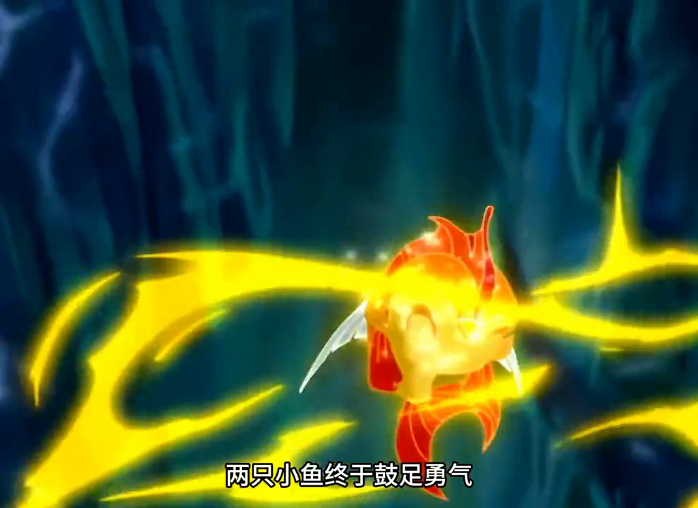 为了让龙鳞在黑暗的海底发出力量,小鱼又找来两名同伴。在照耀下,小美美率先发起了攻击。可泡泡和阿酷的小鱼却临阵逃脱了,很快小美美便支撑不住了。危急时刻,双面龟再次以凡胎肉体冲了上去。虽然救回来小美美,可他很快也被章鱼抓住了。
