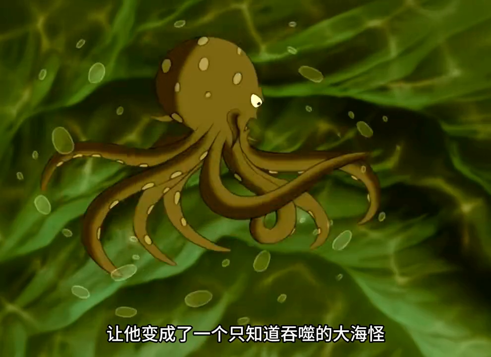 面对自己所做的一切十分愧疚,他一怒之下撞向石头想要自我了断,在被众人拦下后,他也说出了实情。原来就在他放走泡泡几人后,赖皮蛇就用法力控制了他,让他变成了一个只知道吞噬的大海怪。