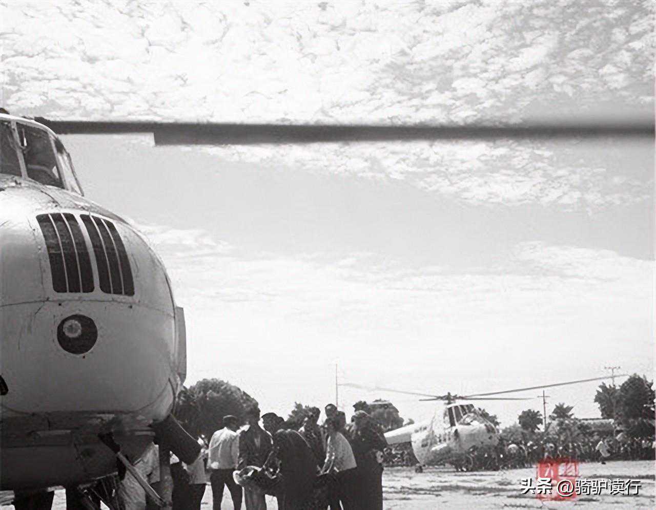 从直升机上跳下来不到五分钟,我看见另一架直升机旁边的一片忙碌景象。