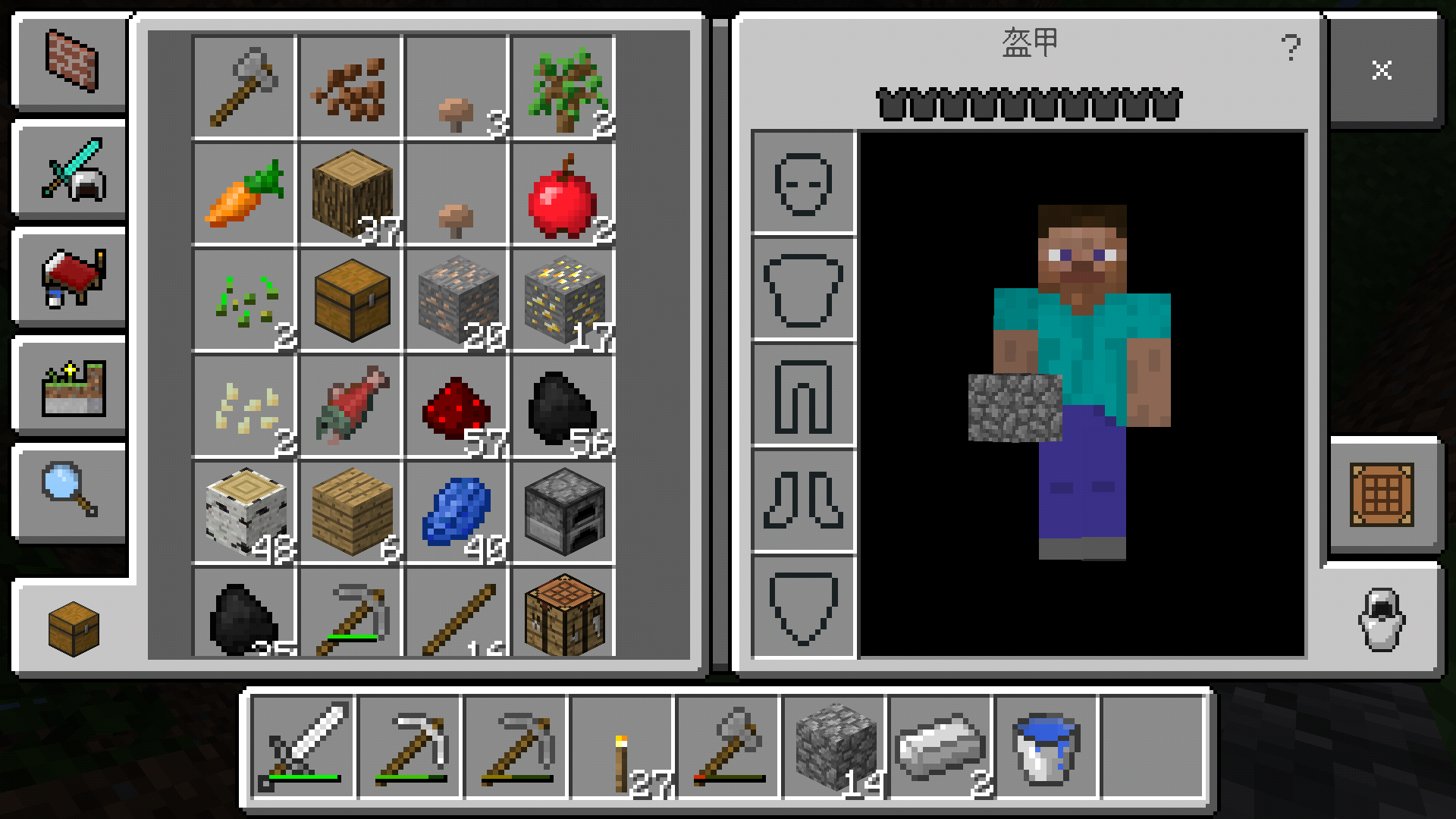 拿起最后的几个铁块做个水桶