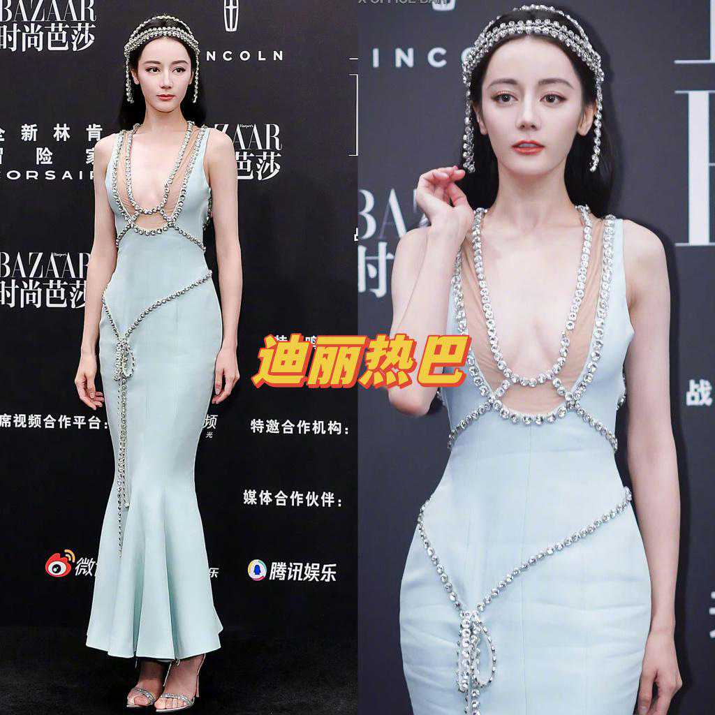这件蓝色鱼尾裙在颜色、剪裁、配饰、发型和妆容等方面都做得非常出色,将迪丽热巴的优势和魅力展现得淋漓尽致。