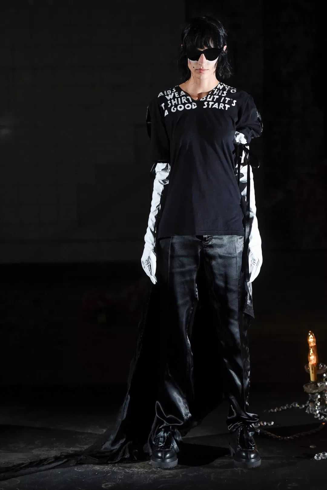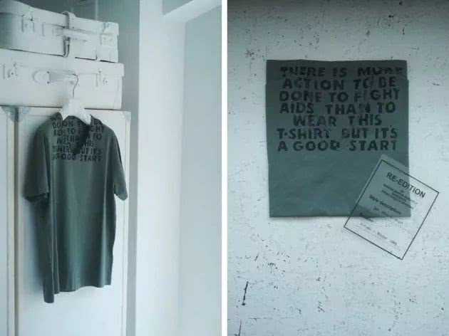 19春夏系列则呼应了那件94年推出的艾滋病援助T恤,有别于这件T恤的是,“THEREISMOREACTIONTOBEDONETOFIGHTAIDSTHANTOWEARTHISTSHIRTBUTIT’SAGOODSTART”这句标语被穿插进全新的款式和配饰里,此次的形象呈现延续了品牌一贯对社会的关怀,社会责任感和人性化也是品牌精神之一。