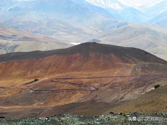 这也行,没异议了,大家重新又把注意力放到了两边的风景上。川藏线上的72拐,没去过,但在去珠峰的路上,经过的这一段盘山路,估计不会逊色于其它地方的各种各样的弯啊、拐啊的。简直是一幅油画,带梵高范儿的。画布平整,背景纯色的金黄色岩土,黑灰色的路,一环套一环,短短的几公里,一二十道弯,密度和角度,叹为观止。还没到珠峰,序幕都这么酷!