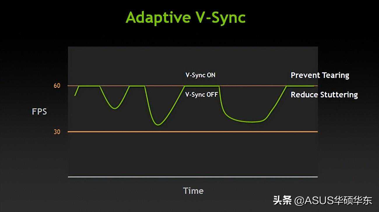 N卡的自适应垂直同步原理:动态地打开和关闭垂直同步以维持更加稳定的帧速率。