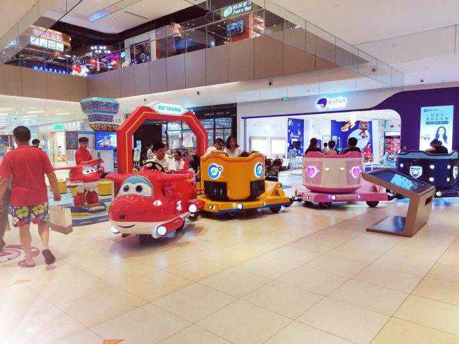 维璟广场二楼卡丁车三楼全球首款超级飞侠自转车厢小火车: