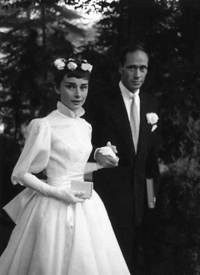 赫本(Hepburn)和她的的第一任丈夫梅尔费勒(MelFerrer)的婚礼