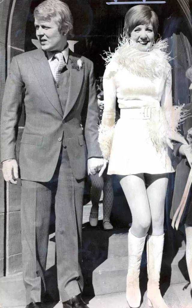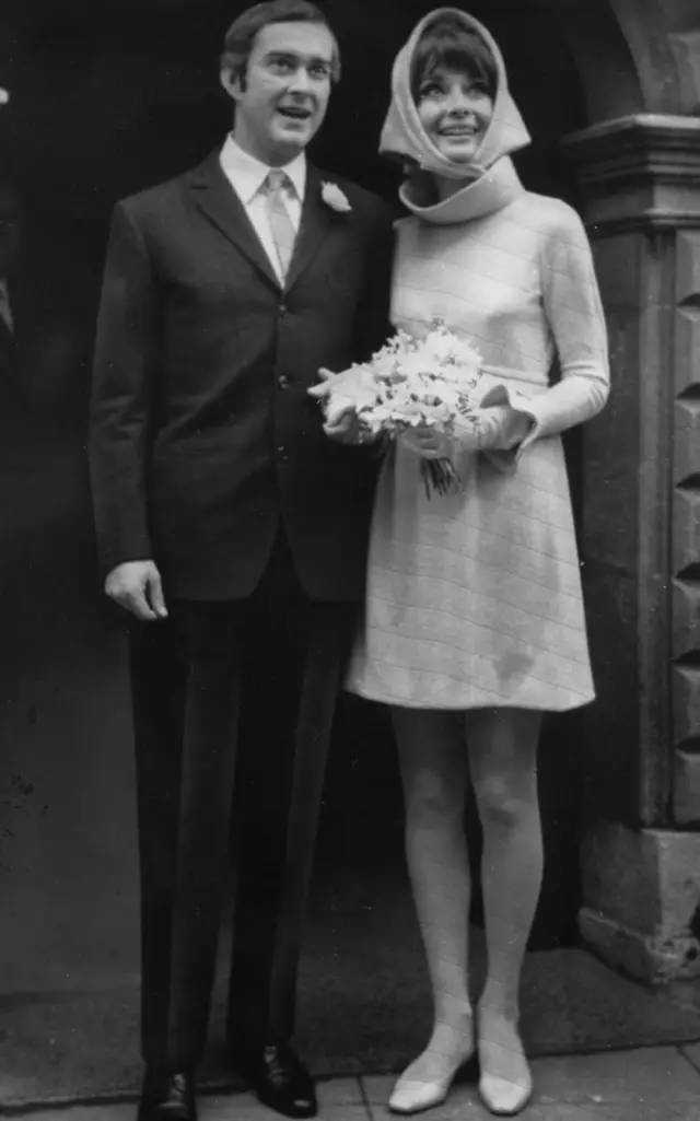 5.1969年英国女主播Cillablack和BobbyWillis完婚时,穿了一件白色迷你裙。