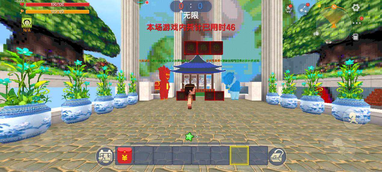 这个地图的名字叫做"【茶语】冰火人大冒险",当玩家进入后视角便会自动锁定为第三视角。在初始位置的前方有两个小人,一个是红色的火娃,一个是蓝色的冰娃,触碰其中一个玩家就会变成对应的身份参与战斗。既然是新的一年,自然要选择红红火火的火娃了。