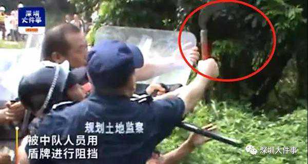 报道,17日,深圳坪山区规划土地监察局依法拆除马峦山一项目部的过期板房时,遭遇暴力抗法。有居民拿着镰刀砍向执法队员,并向工程车泼油点火。